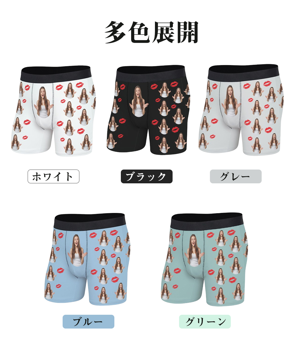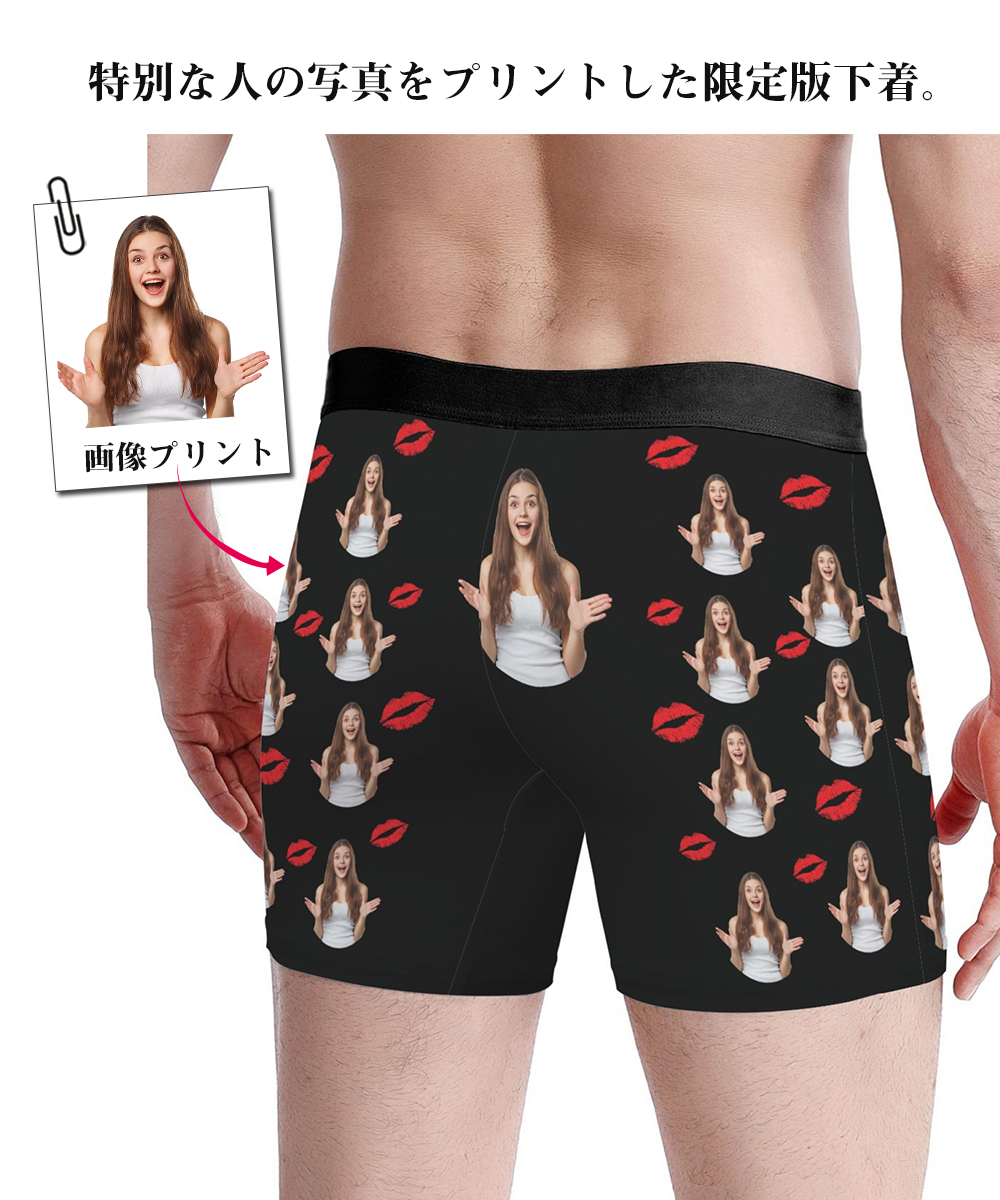 【口紅プリント下着】オリジナルボクサーパンツ メンズ カスタムプリント 口紅キスマーク 写真入り 名入れ ギフト 誕生日 サプライズ 5色展開 S〜3XL対応